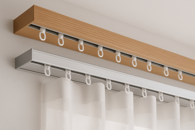 Unsere hochwertigen Vorhangschienen aus Holz oder Aluminium kombinieren Funktionalität mit stilvollem Design. Ob modern-minimalistisch oder klassisch-elegant – wir bieten Ihnen Systeme, die sich perfekt in jedes Raumkonzept einfügen.